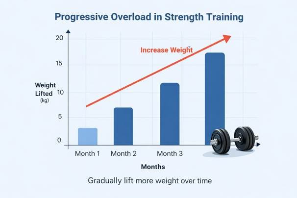 (Chart showing gradual progression in strength training over months)