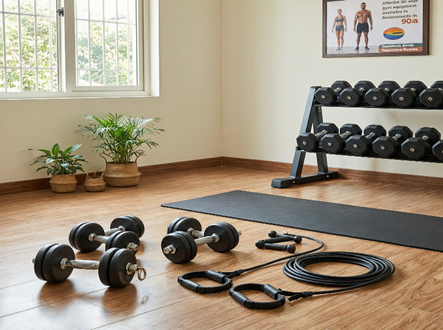 - Dumbbells (starting from ₹500-1000 for basic sets)